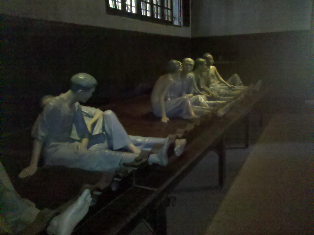 ![]() Life-sized depiction of prisoners in shackles & dark room |