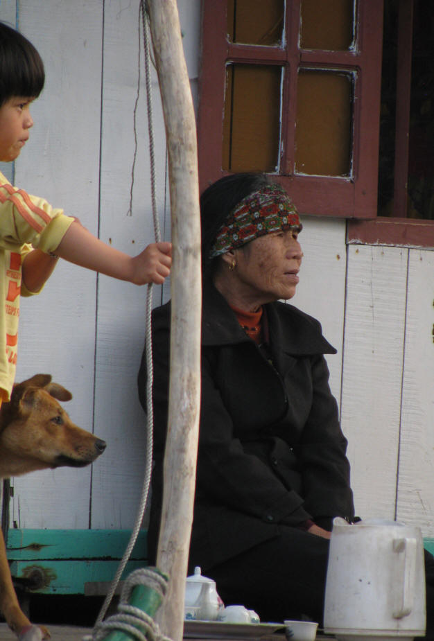 ![]() Boat: son and dog, father and tea |